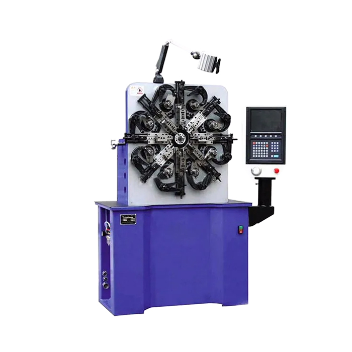 Машина с ЧПУ для навивки пружин KS-F812 имеет высокую скорость производства, точное позиционирование, стабильную работу. Сначала машина выпрямляет проволоку из бухты, в которой она прибыла на завод, выравнивая проволоку в прямую линию. Оттуда машина формирует проволоку в желаемую форму. В этом типе станка имеется восемь инструментальных направляющих на торце, что позволяет ему выполнять несколько типов изгибов, окружностей и радиусов в дополнение к витку пружины. В результате этот процесс может создать ряд пружинных форм.